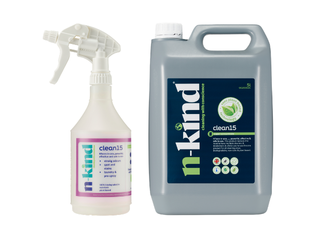 n-kind clean15 can then be applied to help break down and eliminate odour at its source, particularly in carpets and soft furnishings.